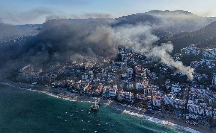 Transitar de Bahía de Banderas a Puerto Vallarta un día después del domingo de Código Rojo es ir a serpentear por sus principales avenidas apenas se atraviesa el río Ameca y así evadir cenizas y restos de los incendios y bloqueos. Nos recibe un manchón oscuro que inhibe la circulación en los carriles entre el banco Santander y el café Starbucks, uno de los primeros bloqueos del domingo. Es el sitio donde todos los días se apostaba una patrulla de policía.